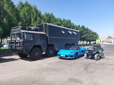 Am Nachmittag kam ein Kuwaiti mit seinem Lamborghini, wollte den KAT sehen und erzählte uns von einer Veranstaltung an der Moreeb-Düne in den Emiraten. Wir werden mal recherchieren, das wäre natürlich ein Mega-Highlight in den Emiraten. Und außerdem erklärte er uns wo sich die Kuwaitis mit den schnellen Autos treffen. Da müssen wir natürlich auch hin, dauert aber noch ein paar Tage.