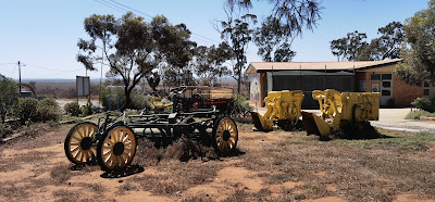 Die Strecke war heute ebenfalls nicht lang, dafür mit einigen Haltepunkten. Der erste war natürlich tanken. Nach mehr als 550 km ist die Tankuhr ziemlich weit unten. Klar, der Iveco hat natürlich keinen Zusatztank. Braucht man hier auch nicht wirklich, denn oft genug gibt es Tankstellen, leider nicht immer preiswert. Der erste Stop war dann Iron Knob, hier wird Eisenerz abgebaut, es gibt Führungen zu den Minen, allerdings ist erst einmal Samstag, und dann sieht die Stadt aus wie ausgestorben. Ich glaube, das was hier überwiegt ist die Anzahl der Autowracks. Ich hab ja schon viel gesehen, aber hier übertrifft es alles. Das Museum hatte natürlich auch geschlossen, so dass ich nur die draußen ausgestellten Maschinen ansehen konnte.